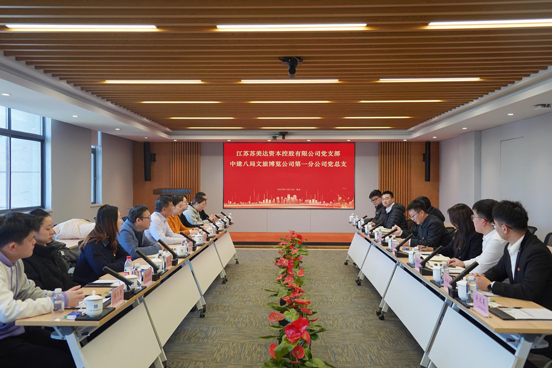 苏美达资本与中建八局文旅博览公司第一分公司开展主题党日活动,围绕以金融资本助推业务发展进行交流。