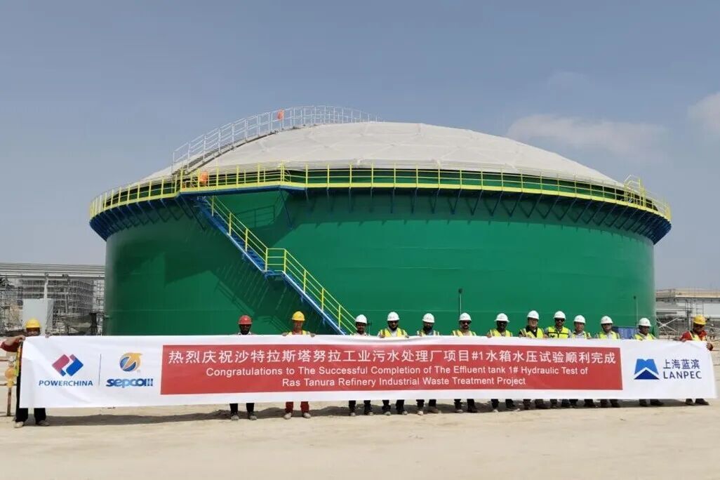 沙特拉斯塔努拉储罐EPC项目完成水箱水压试验