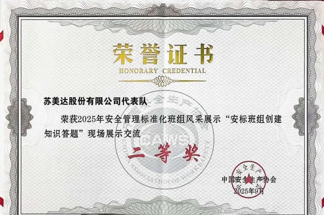 近期,中国安全生产协会班组安全建设工作委员会第二届“安全管理标准化班组风采展示”暨“安标班组创建知识答题”活动在天津举行。在国机集团的统一部署和指导下,苏美达股份代表队闯入决赛并荣获二等奖。