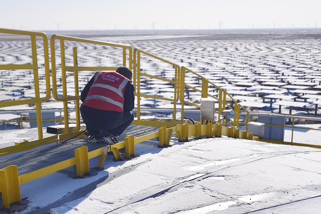 在吉林省白城市大安市,吉西基地鲁固直流白城 140 万千瓦外送项目现场,蓝科高新员工开展日常巡检,保障熔盐储罐配套仪器仪表稳定运转。