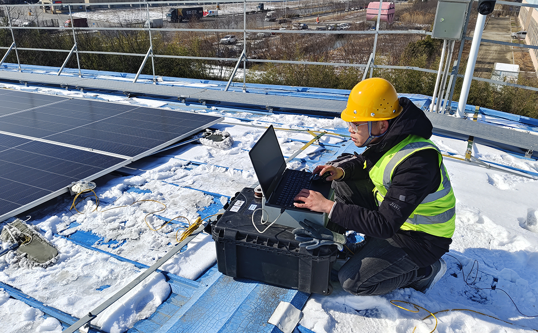 国药集团扬州威克生物工程1050.4kWp分布式光伏项目现场,能源公司测试团队开展光伏系统效率测试工作,以科学检测护航光伏项目全生命周期效益最大化。