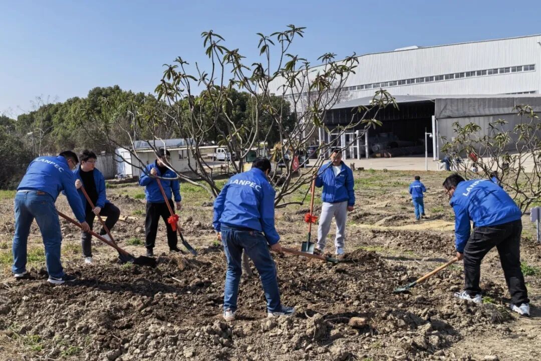 上海蓝亚开展植树活动,为上海基地园区种植绿树,美化办公环境。