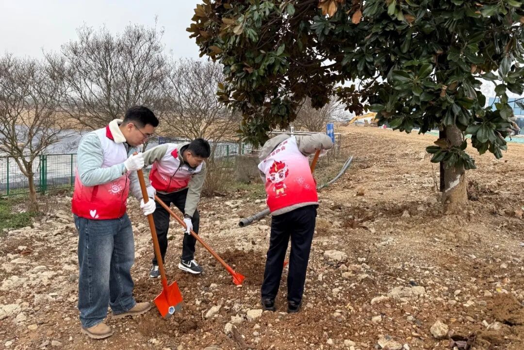 轻纺公司组织前往江宁佘村开展植树活动,大家携手种下棵棵树苗,为城市添绿,为未来蓄力。