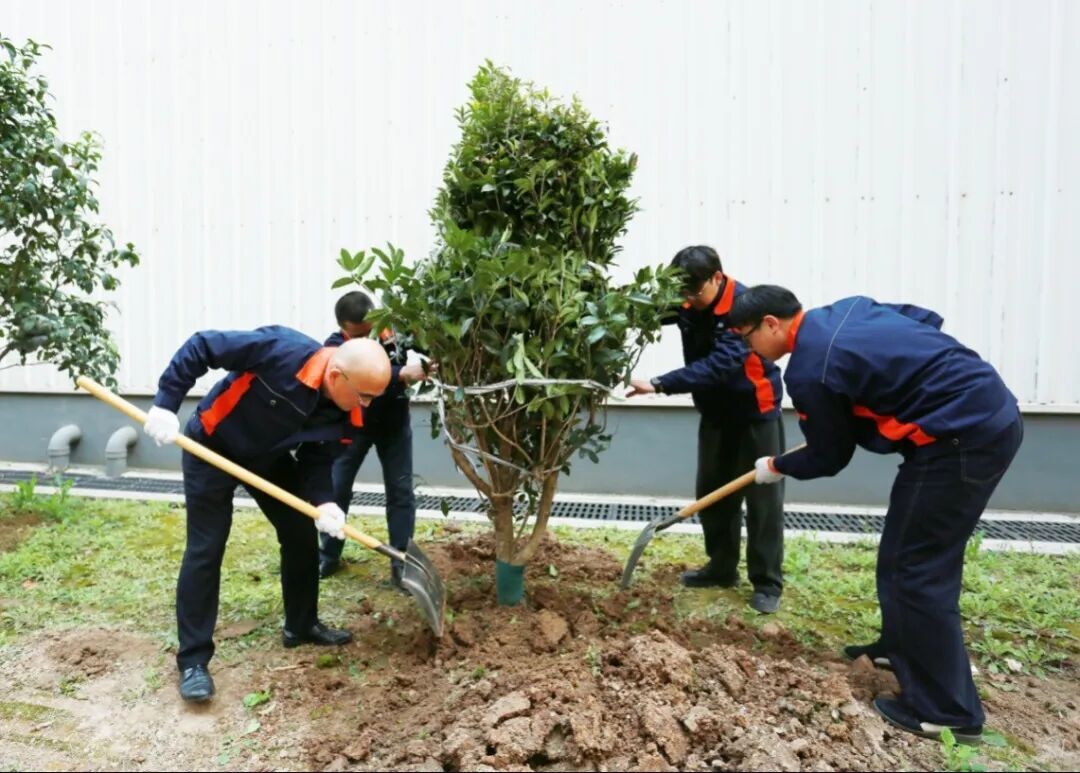 五金公司在智能产业基地组织栽种桂花树,为厂区增添新绿、注入生机。