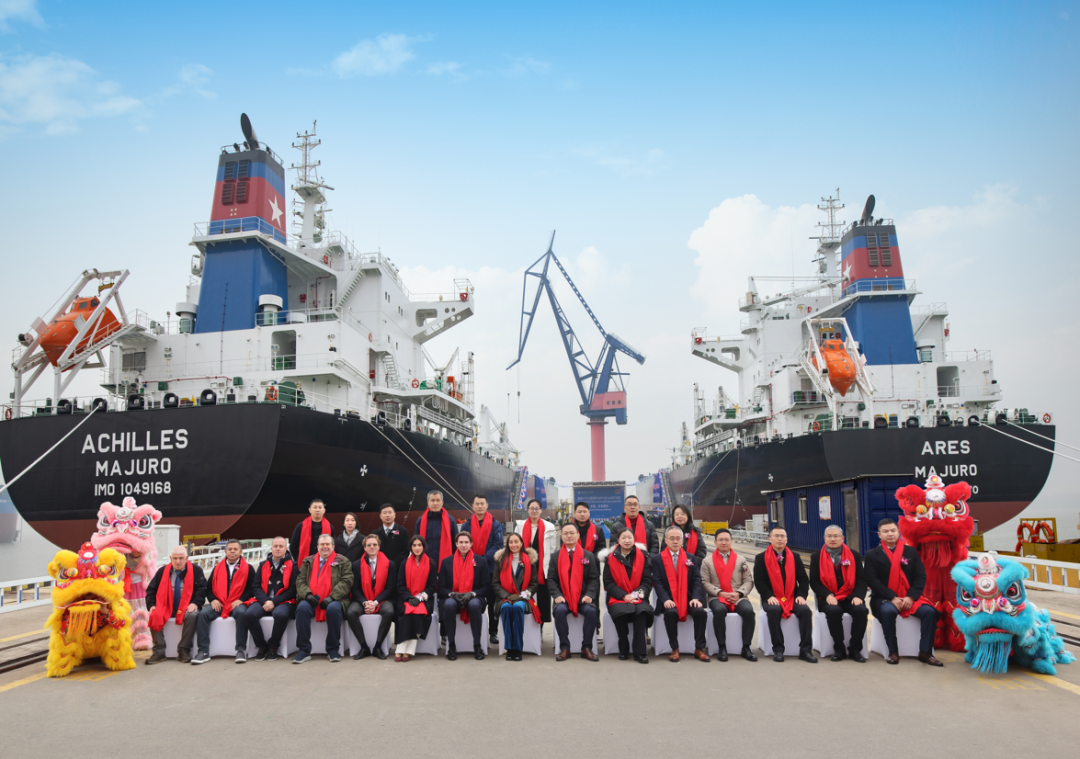 1月6日,船舶公司与摩纳哥船东TMA合作建造的2艘皇冠63 3.0 版本散货船“阿喀琉斯”号与“阿瑞斯”号顺利命名交付。苏美达总经理助理,船舶公司董事长何隽出席交付仪式。