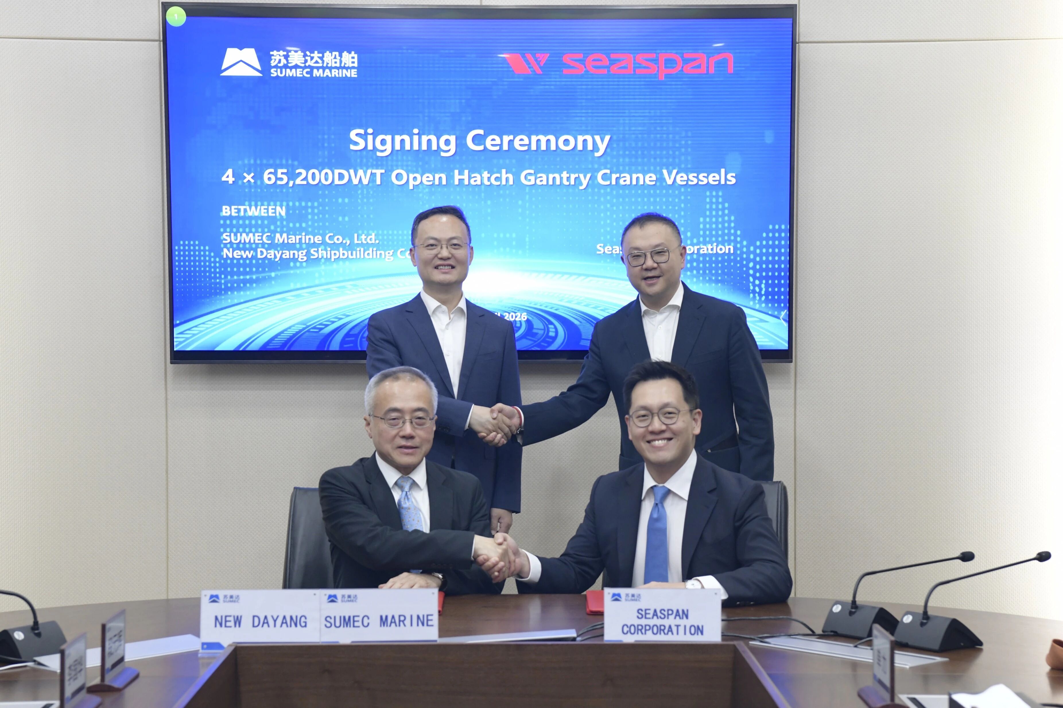 2026年04月28日近日,苏美达股份有限公司(以下简称苏美达)所属船舶公司与船东Seaspan签署四艘65200DWT敞口门式轨道吊多用途船建造合同;接连交付工银金租2艘皇冠63 3.0版本散货船。